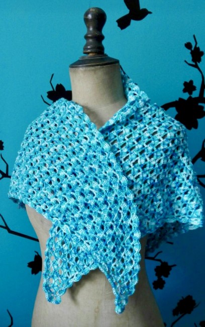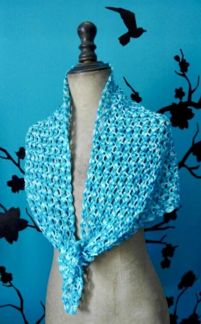 Ce châle aux couleurs dégradées de bleu turquoise et blanc vous accompagnera pendant les soirées fraîches du printemps ou de cet été