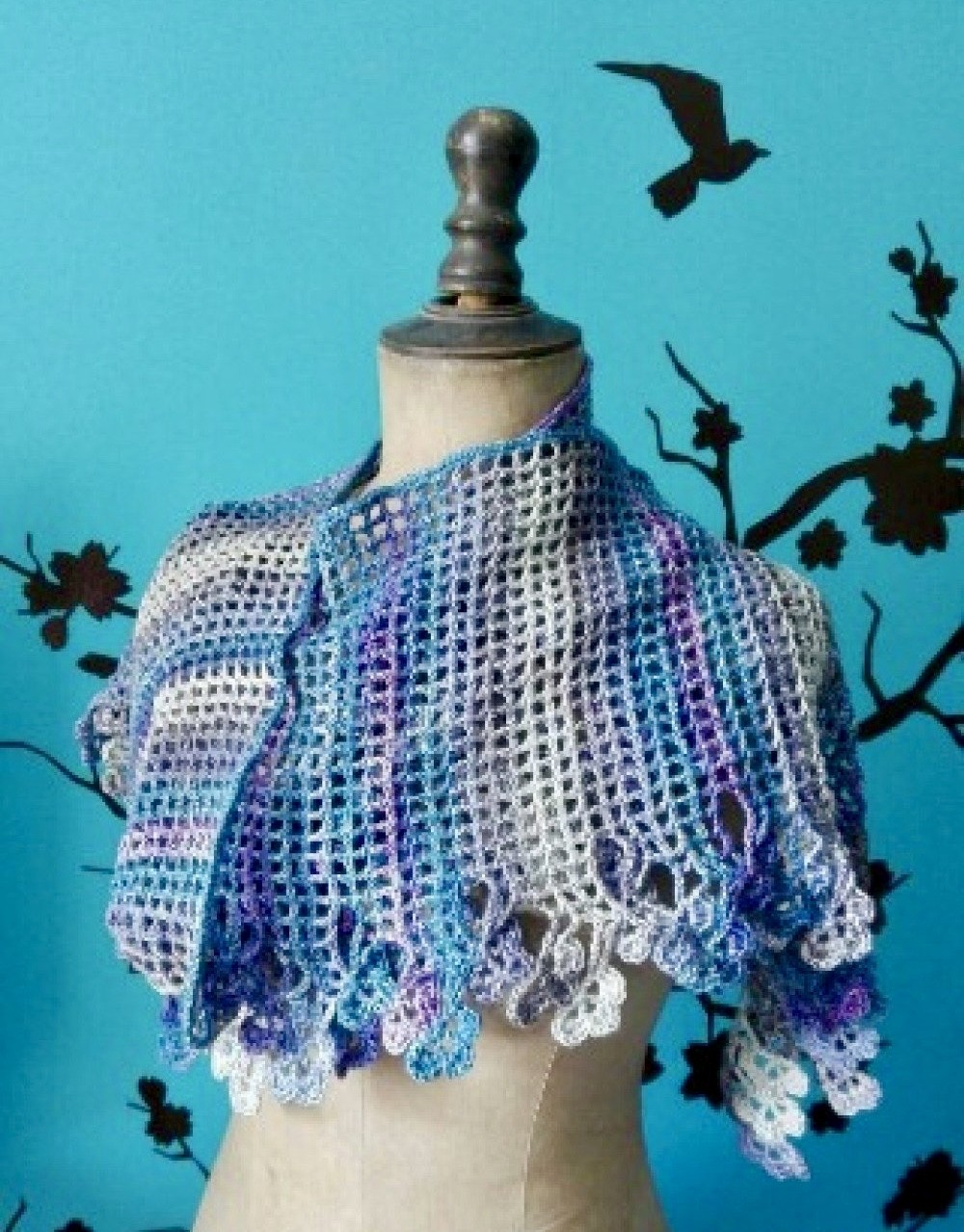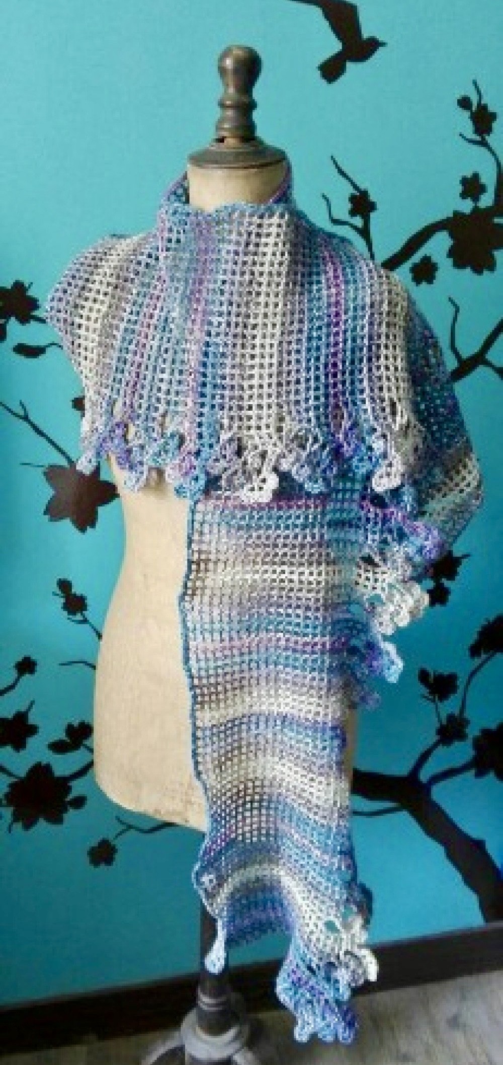 Grande étole au crochet avec bordure de fleurs