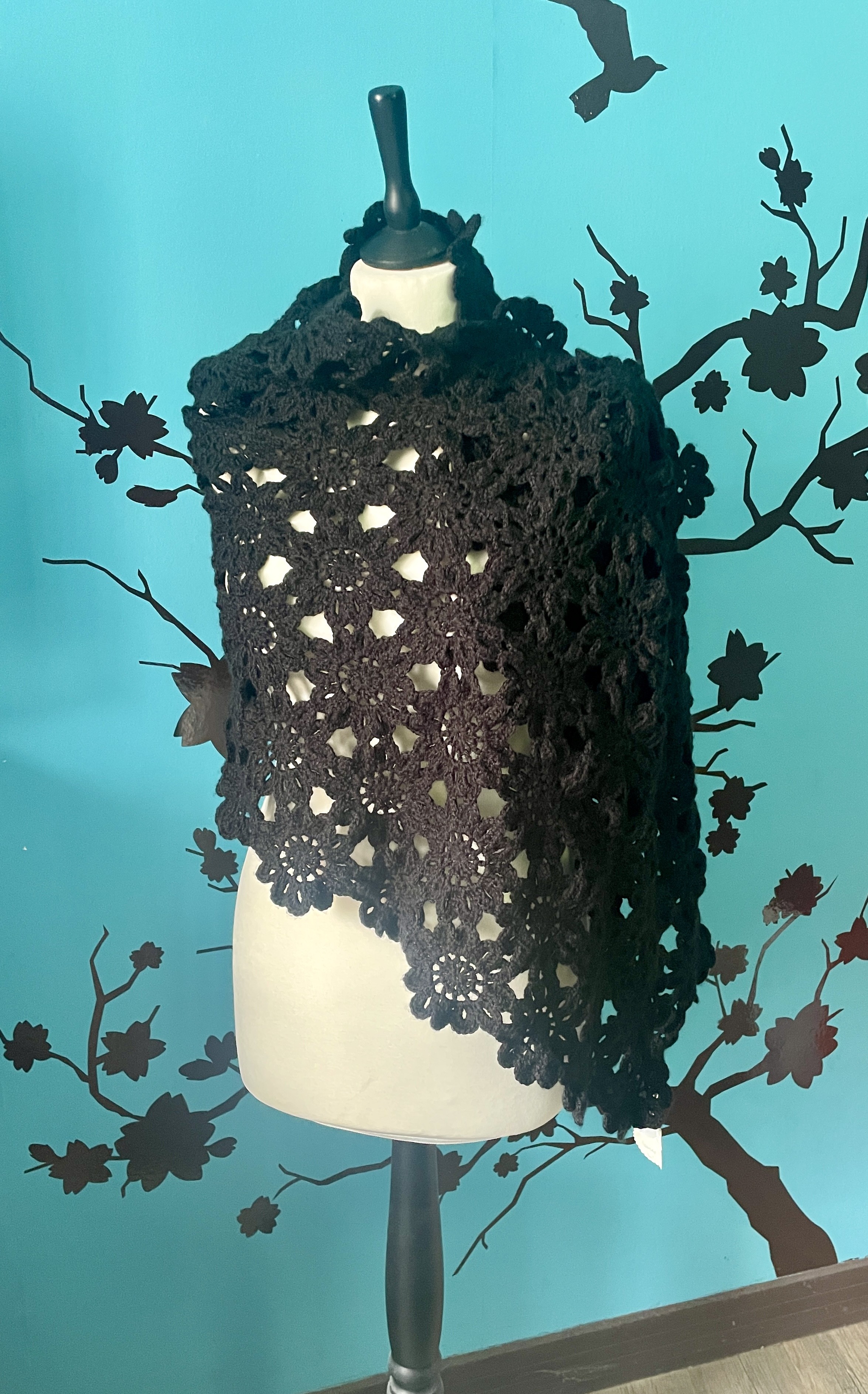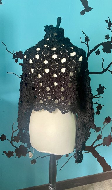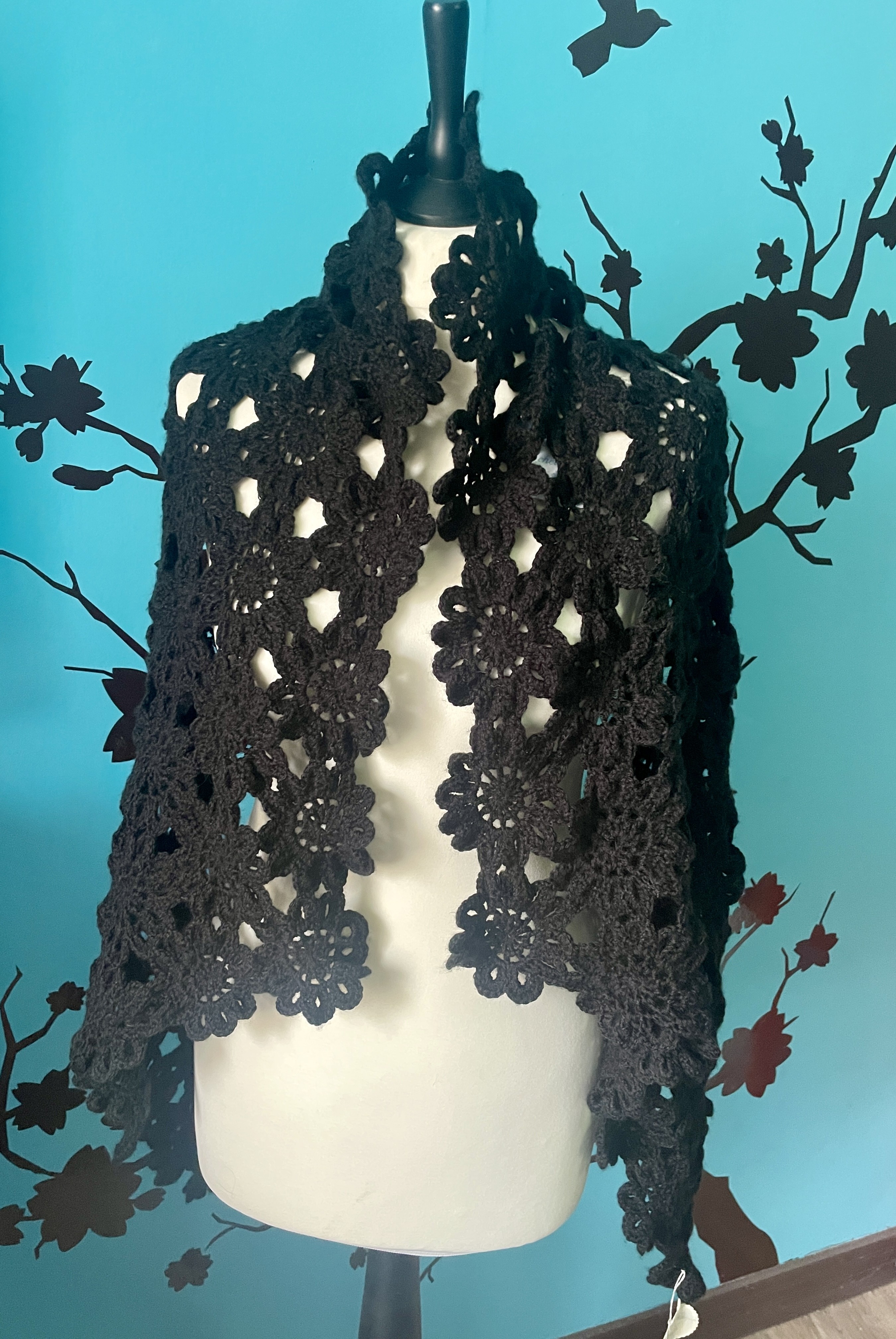 Découvrez cette magnifique étole de style japonais, entièrement réalisée au crochet avec 105 fleurs délicates reliées entre elles. Un accessoire élégant et unique, parfait pour ajouter une touche d'exotisme à vos tenues en toutes saisons. Portez cette étole sur les épaules pour un look élégant et raffiné.