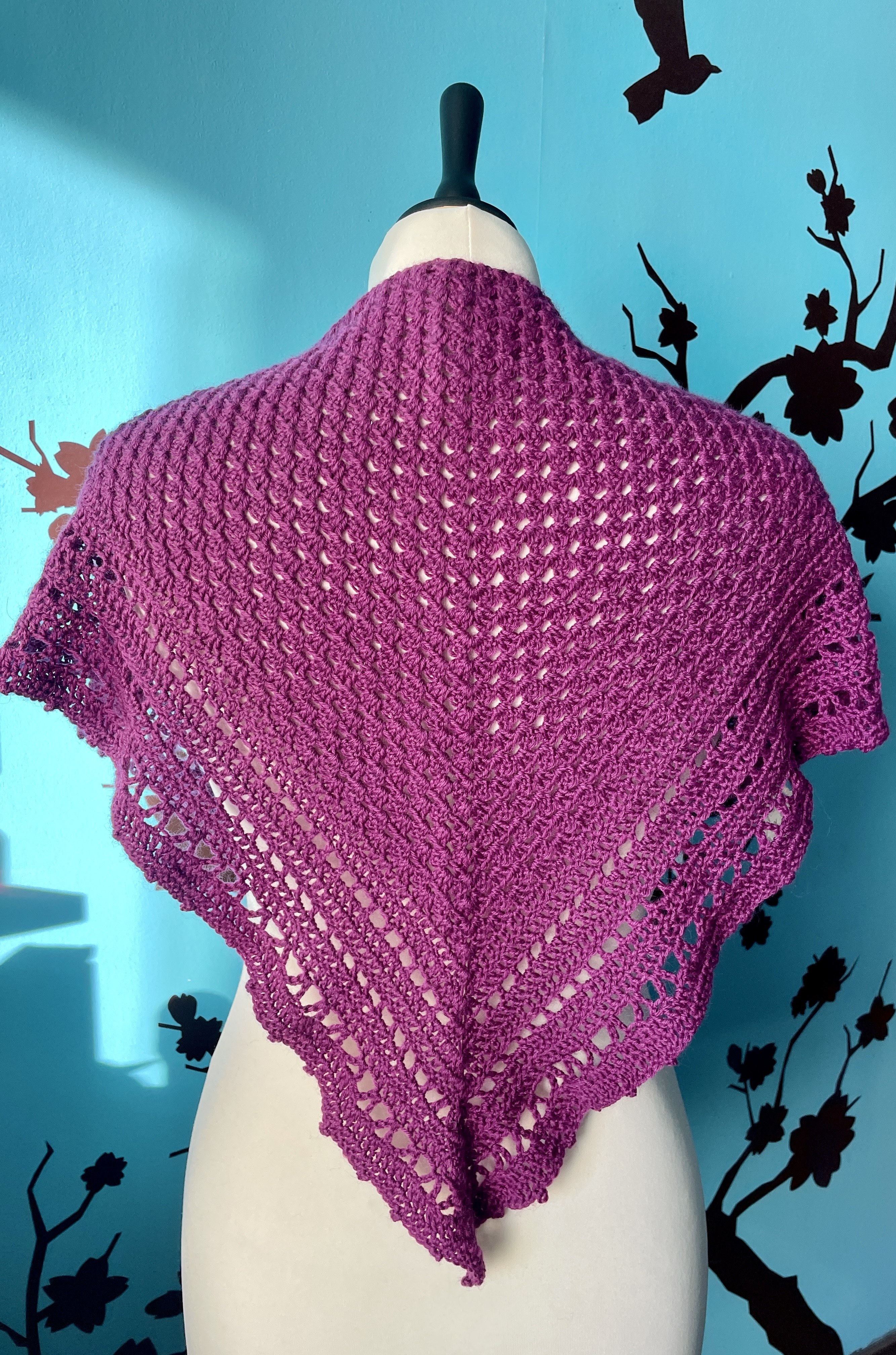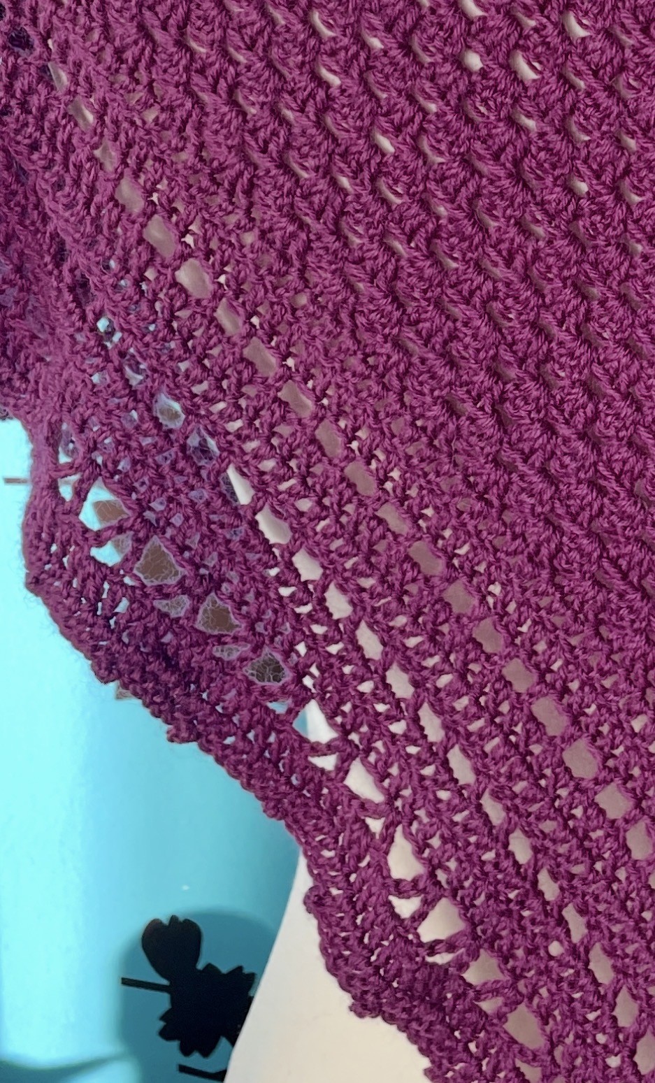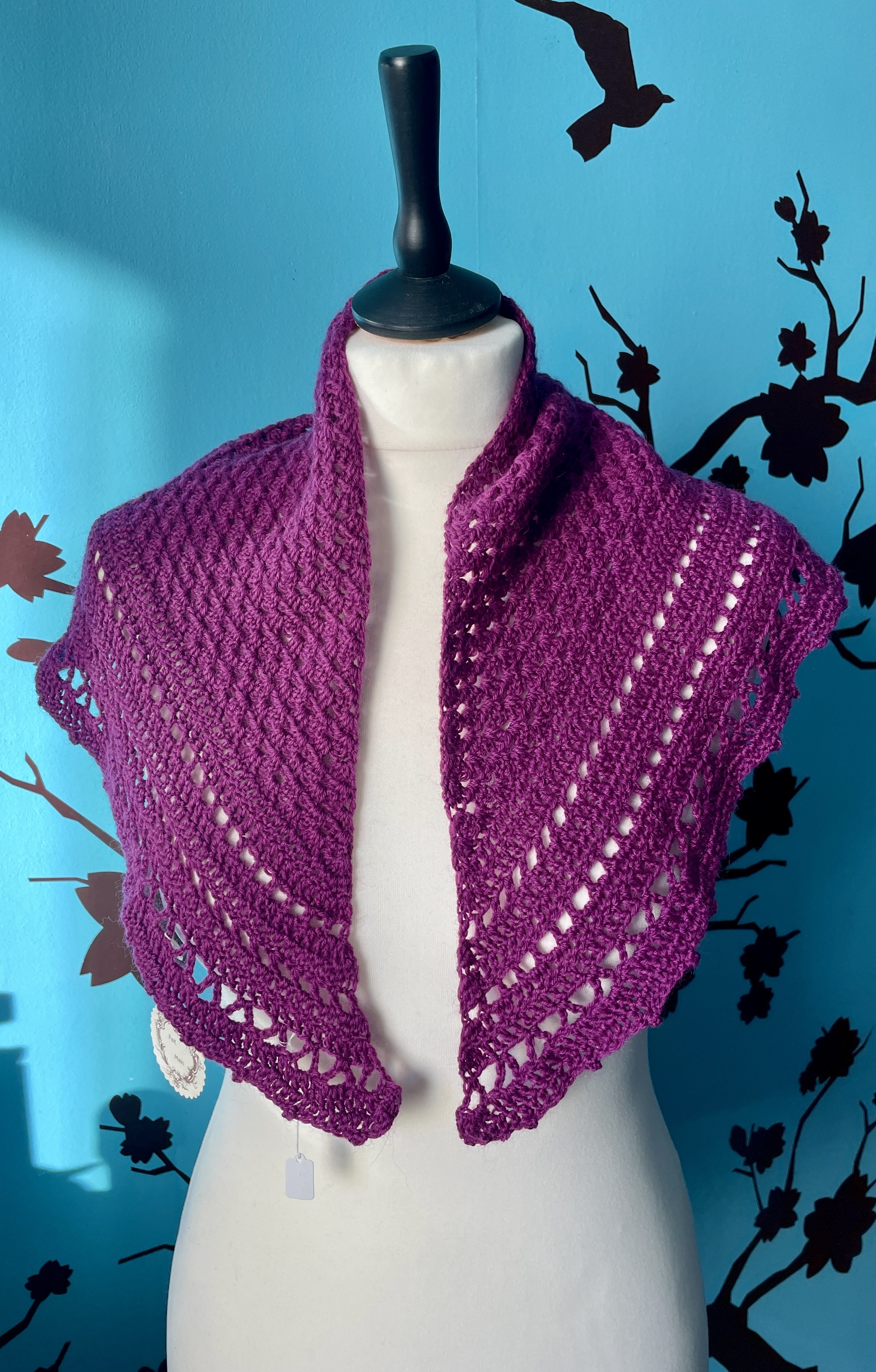 Mini châle/chèche de couleur fushia réalisé au crochet avec soin