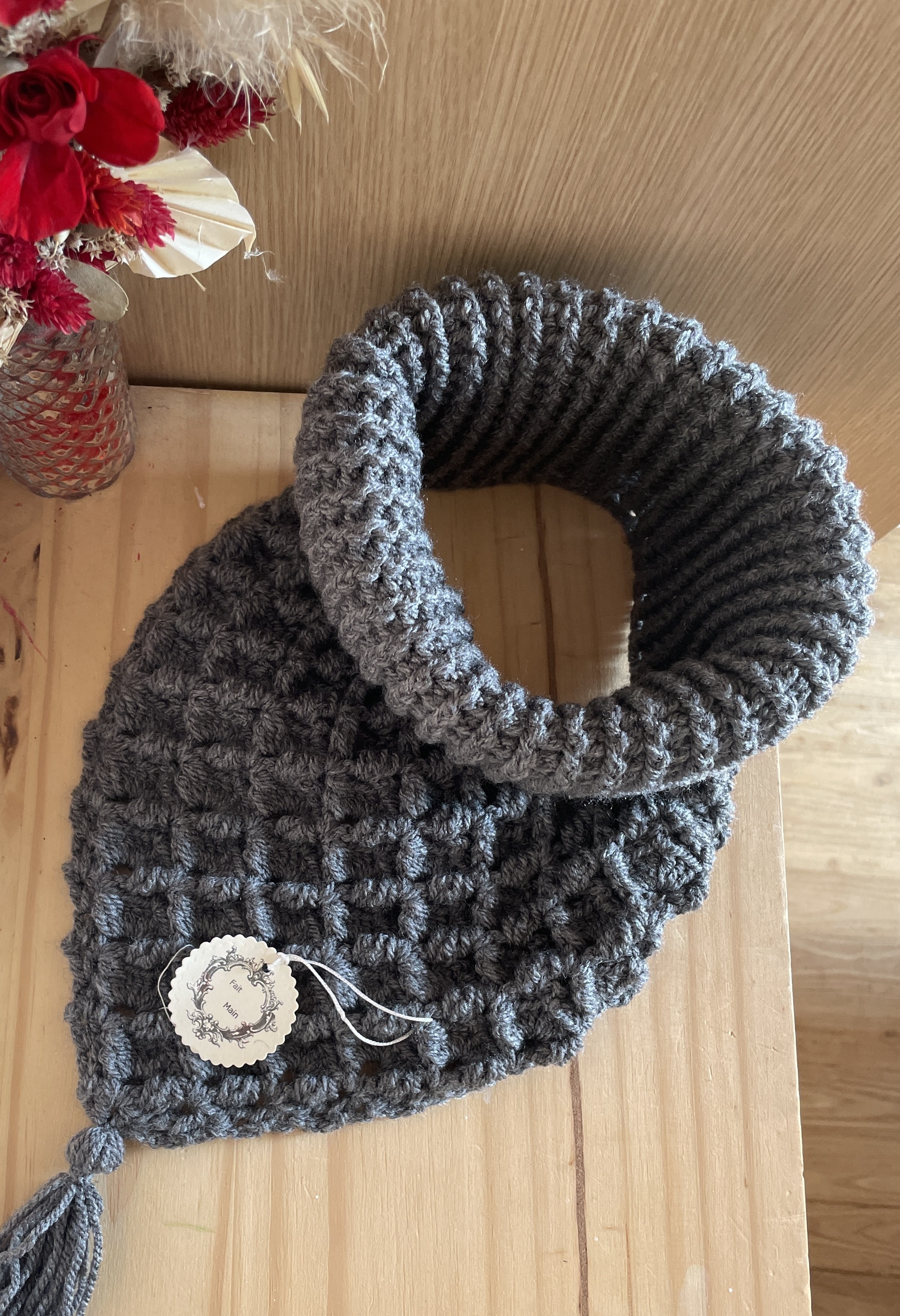 Col plastron gris foncé au crochet – Tour de cou chaud fait main hiver