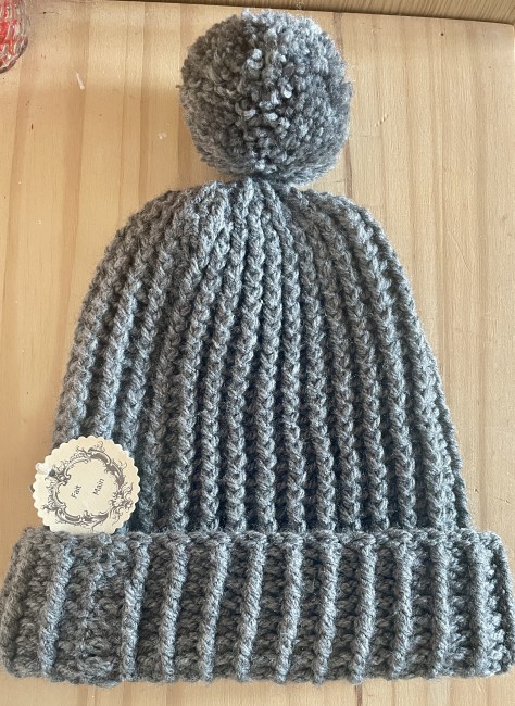 bonnet gris au crochet, bonnet gris, bonnet au crochet, pompon gris