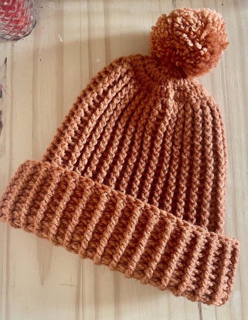Bonnet et pompon marron caramel